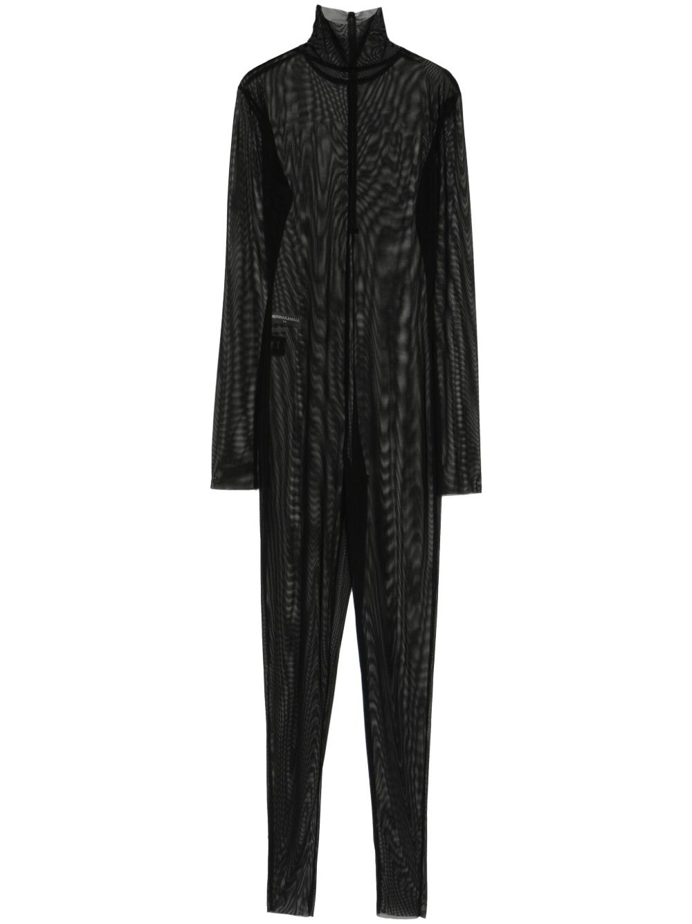 roll-neck slim-cut catsuit Highlights - Black - Stretch-design - Mesh design - Slim cut - Roll neck - Concealed rear zip fastening - Long sleeves - Unlined - Raw-cut edge - Full-length - Just a reminder that this piece must be tried on over your own garments. Imported Composition Nylon 82%, Spandex/Elastane 18% SIZE & FIT Model measurements Height 5 ft 11 in(1.8 m) Bust/Chest 31.49 in(80 cm) Hips 36.61 in(93 cm) Waist 24.4 in(62 cm) FittingInformation Designed for a close fit throughout Made from a lightweight stretch fabric, this piece offers elasticity and flexibility when worn Washing instructions Machine Wash