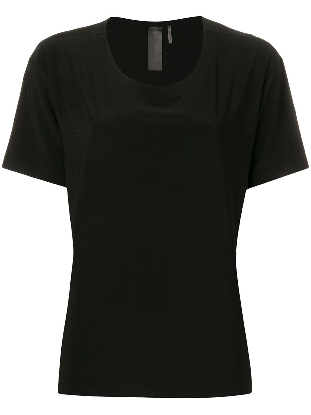 scoop neck T-shirt Highlights - Black - Straight hem - Scoop neck - Short sleeves - No pockets Imported Composition Polyester 100% SIZE & FIT Model measurements Height 5 ft 11 in(1.8 m) Bust/Chest 31.49 in(80 cm) Hips 35.82 in(91 cm) Waist 24.8 in(63 cm)