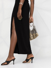side-slit detail halter dress Highlights - Black - Side slits - Halterneck - Sleeveless - Long length - Straight hem Imported Composition Polyester 95%, Spandex/Elastane 5% SIZE & FIT Model measurements Height 5 ft 10 in(1.77 m) Bust/Chest 29.92 in(76 cm) Hips 34.25 in(87 cm) Waist 23.62 in(60 cm) Measurement HIPS 16.53 in(42 cm) LENGTH 51.18 in(130 cm) WAIST 12.99 in(33 cm) FittingInformation This piece fits true to size. We recommend you get your regular size Designed to be fitted at the waist and hips, loose over the leg Made with a mid-weight stretch fabric Washing instructions Hand Wash