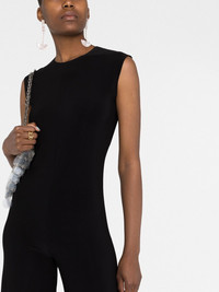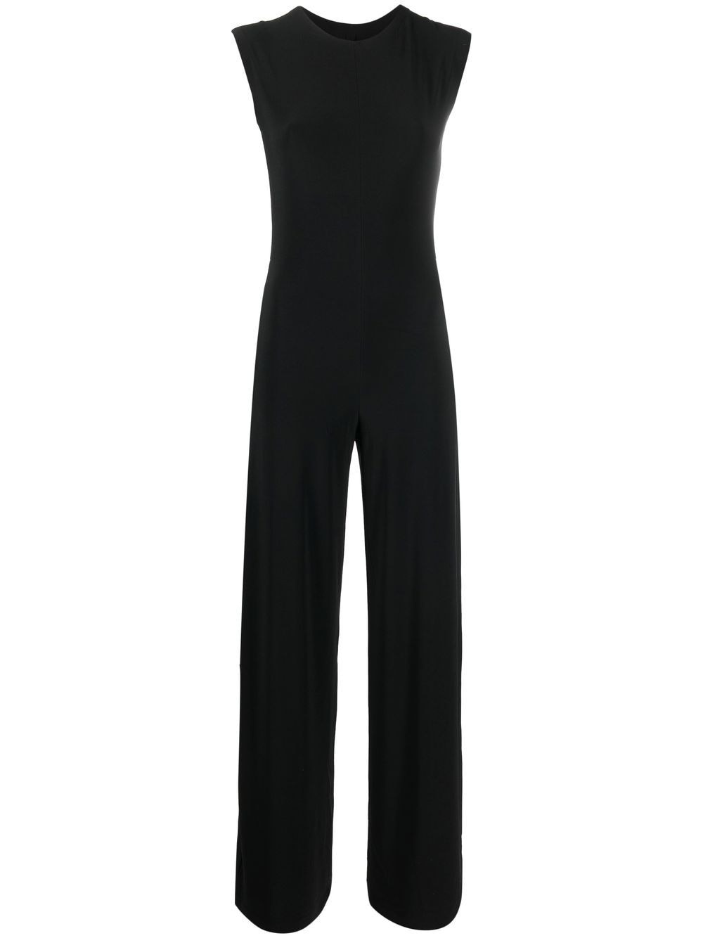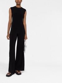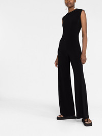 sleeveless wide-leg jumpsuit An understated silhouette and tonal black colourway ensure the versatility of this Norma Kamali jumpsuit. It has a modern sleeveless bodice that flows to an elegant wide leg shape. Imported Composition Polyester 95%, Spandex/Elastane 5% SIZE & FIT Model measurements Height 5 ft 11 in(1.8 m) Bust/Chest 31.49 in(80 cm) Hips 36.61 in(93 cm) Waist 24.4 in(62 cm) Measurement INSIDE LEG 34.64 in(88 cm) HIPS 35.43 in(90 cm) FittingInformation This piece fits true to size. We recommend you get your regular size Cut for a slim fit Designed to be fitted at the waist and hips, loose over the leg Made with a mid-weight stretch fabric Washing instructions Hand Wash