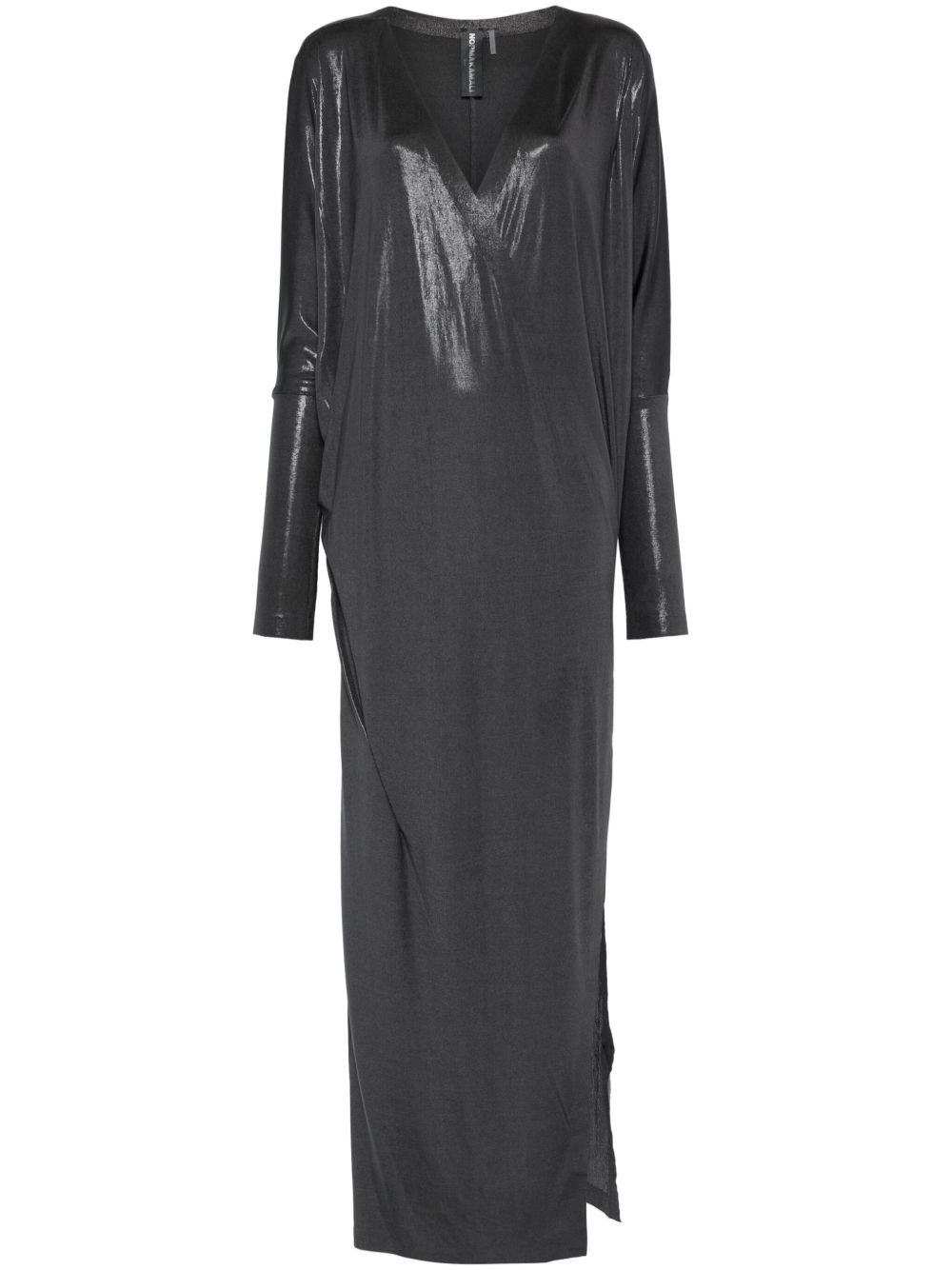 wrap dolman-sleeve gown Highlights - Charcoal grey - Stretch-design - Lame effect - Wrap design - Long dolman sleeves - Plunging v-neck - Side slit - Unlined - Straight hem - Full-length Imported Composition Polyester 95%, Spandex/Elastane 5% SIZE & FIT Model measurements Height 5 ft 10 in(1.77 m) Bust/Chest 30.7 in(78 cm) Hips 35.03 in(89 cm) Waist 23.62 in(60 cm) FittingInformation Designed for a relaxed fit, this piece allows for comfort and movement when worn Made from a midweight stretch fabric, this piece offers elasticity and flexibility when worn Washing instructions Hand Wash