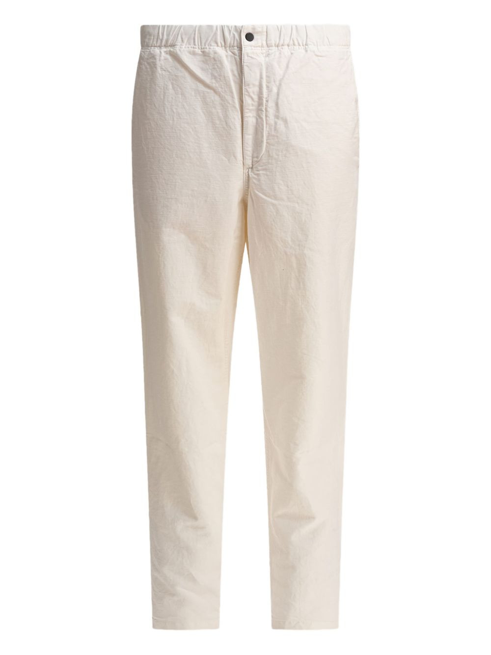 elasticated-waist cotton trousers Highlights - Off-white - Cotton linen blend - Elasticated waistband - Button fly - Rear welt pockets Imported Composition Cotton 63%, Linen/Flax 37% Washing instructions Read Manufacturer Guidelines