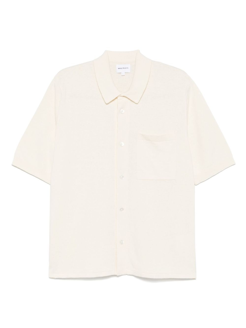 linen-cotton shirt Highlights - White - Front button fastening - Chest patch pocket - Short sleeves - Straight hem Imported Composition Linen/Flax 55%, Cotton 45% SIZE & FIT FittingInformation Designed for a relaxed fit, this piece allows for comfort and movement when worn Made with a midweight knit, this piece offers some stretch