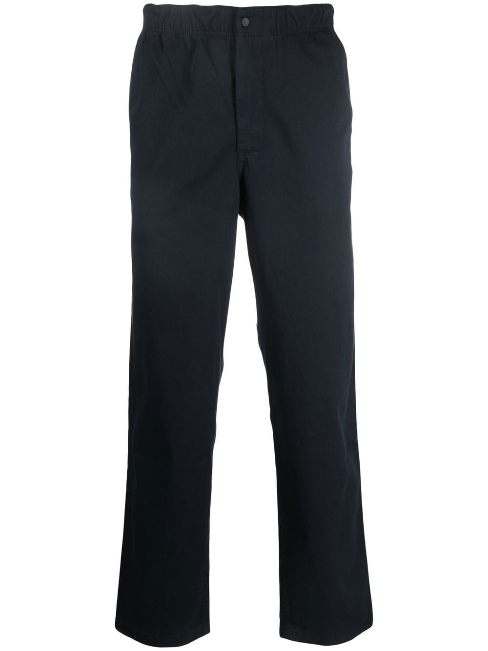 mid-rise straight-leg trousers Highlights - Navy blue - Organic cotton blend - Mid-rise - Elasticated waistband - Front button fastening - Straight leg - Rear welt pocket - Logo patch to the rear - Straight hem Imported Composition Organic Cotton 98%, Spandex/Elastane 2%