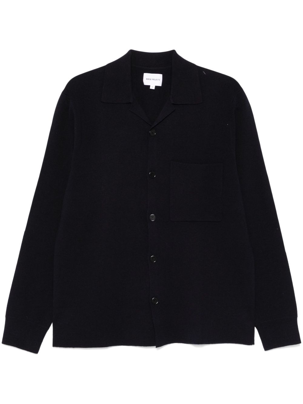 Nicolai jacket Highlights - Navy blue - Wool-cotton blend - Knitted construction - Ribbed trim - Camp collar - Long sleeves - Chest patch pocket - Straight hem Imported Composition Wool 55%, Cotton 45% SIZE & FIT Model measurements Height 6 ft 2 in(1.87 m) Bust/Chest 38.97 in(99 cm) Hips 37.99 in(96.5 cm) Waist 29.52 in(75 cm) FittingInformation Designed for a relaxed fit, this piece allows for comfort and movement when worn Made from a midweight fabric Washing instructions Hand Wash