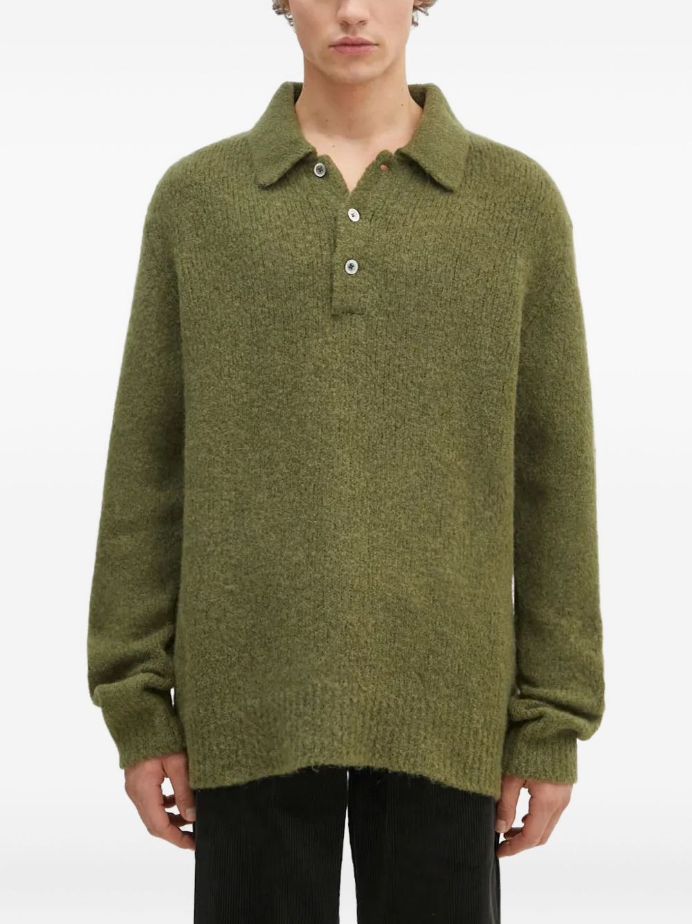 Rasmus polo-neck brushed sweater Highlights - Olive green - Brushed texture - Polo neck - Three-button placket - Long sleeves - Ribbed cuffs Imported Composition Fabric 100% Washing instructions Read Manufacturer Guidelines