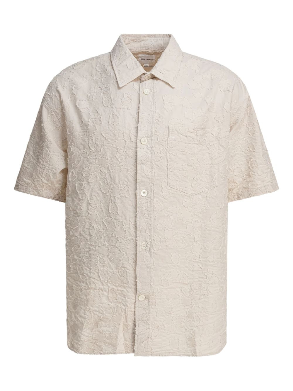 textured short-sleeve shirt Highlights - Off-white - Textured weave - Short sleeves - Button fastening - Classic collar - Patch pocket Imported Composition Cotton 99%, Elastane 1% Washing instructions Read Manufacturer Guidelines