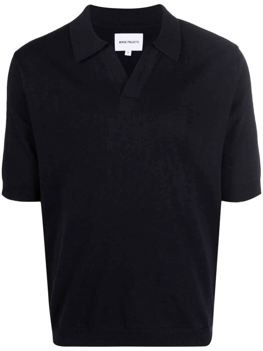 V-neck polo sweater Highlights - Jet black - Linen blend - Knitted construction - V-neck - Classic collar - Short sleeves - Ribbed cuffs and hem - Straight hem Made in Italy Composition Linen/Flax 55%, Cotton 45%