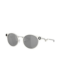Deadbolt round frame sunglasses Silver-tone titanium Deadbolt round frame sunglasses from Oakley featuring a silver-tone logo to the side, round frames and tinted lenses. This item comes with a protective case. Made in United States Composition Titanium 100%