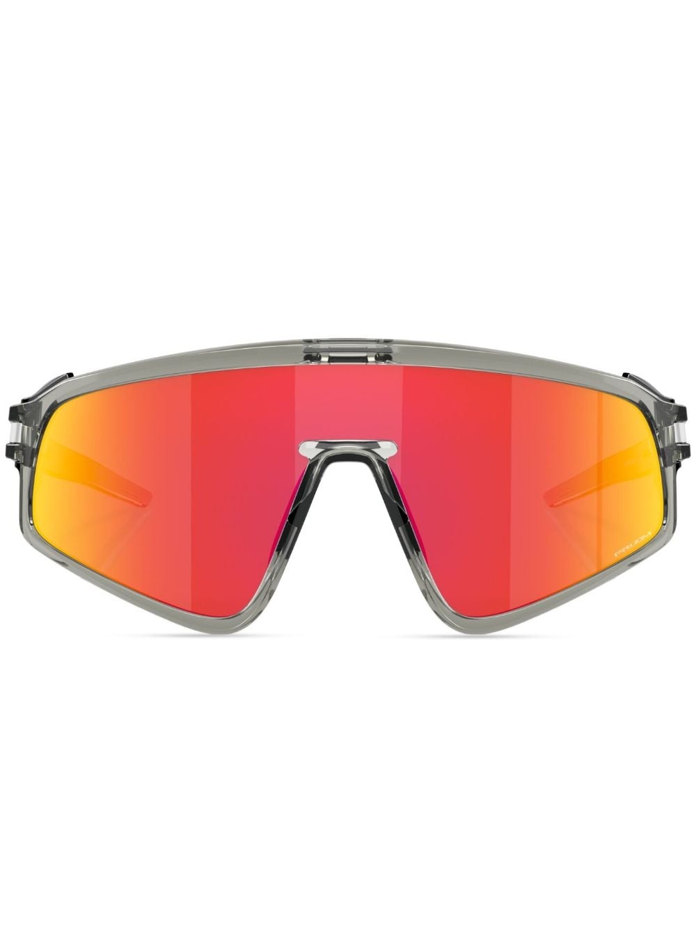 Latch™ Panel shield-frame sunglasses Highlights - Grey - Double gradient lenses - Prizm™ lens technology - Uv protection - Lightweight bio-matter™ frame - Unobtainium® nose pads - Logo plaque - Straight arms - Straight tips - These glasses come with a protective case. Made in United States Composition Acetate 100% SIZE & FIT Measurement Arm Length 4.96 in(12.6 cm) Bridge Width 5.31 in(13.5 cm) Lens Diameter 1.37 in(3.5 cm)