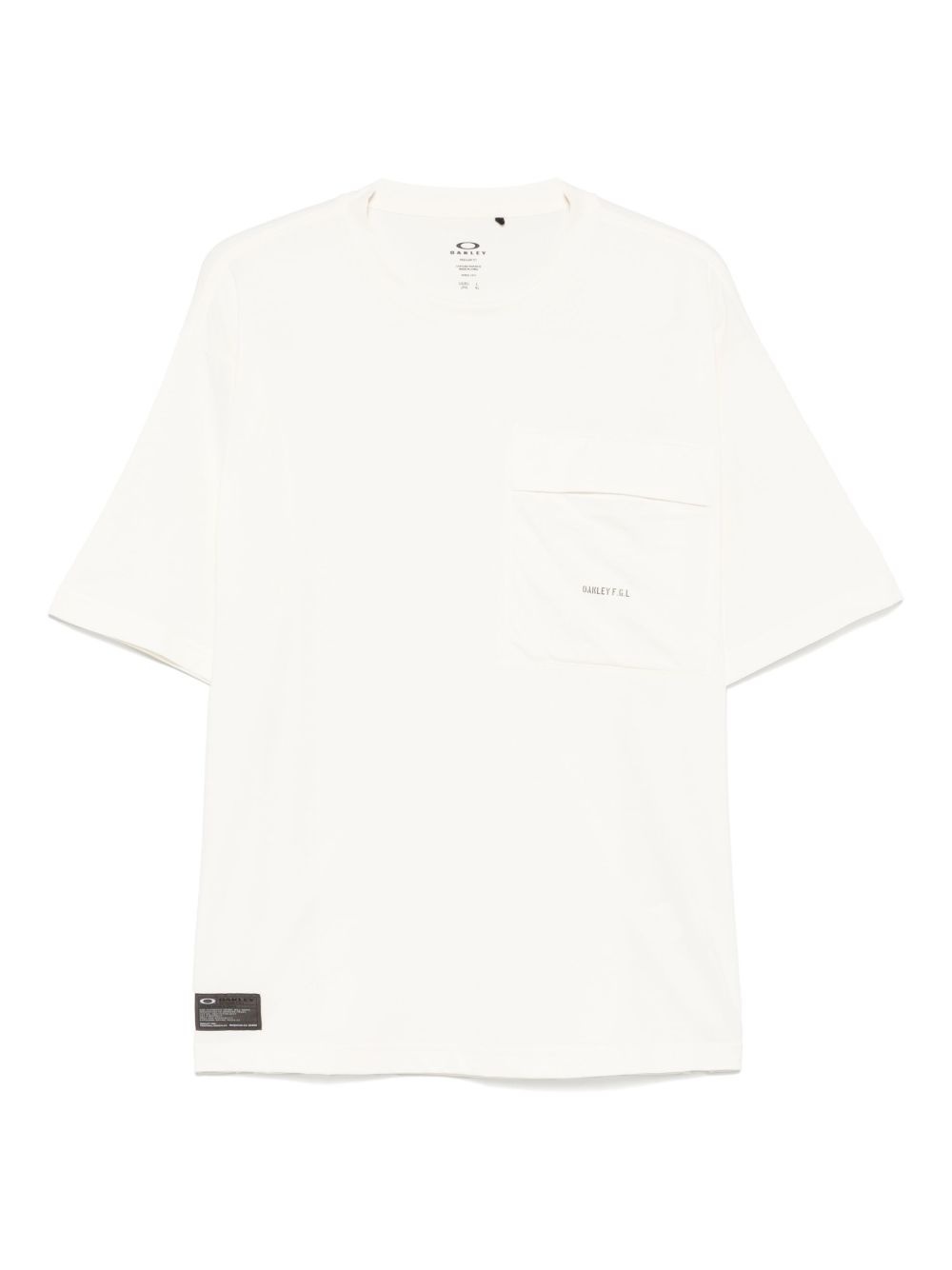 logo-print T-shirt Highlights - Light beige - Chest flap pocket - Crew neck - Short sleeves - Short side slits Imported Composition Polyester 100%