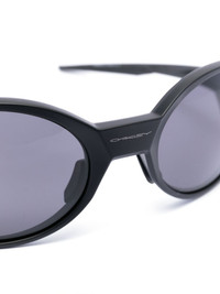 oval frame sunglasses black acetate grey tinted lenses oval frame logo print at the arm straight arms These glasses come with a protective case. Made in United States Composition Acetate 100%, Acrylic 100% SIZE & FIT Measurement Arm Length 5.39 in(13.7 cm) Bridge Width 0.74 in(1.9 cm) Lens Diameter 2.28 in(5.8 cm) Total Width 5.11 in(13 cm)
