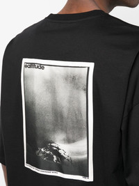 Buzza photograph-print T-Shirt Highlights - Black - Organic cotton/silk - Jersey knit - Photograph print - Crew neck - Short sleeves - Straight hem Imported Composition Silk 100%, Organic Cotton 100% SIZE & FIT Model measurements Height 6 ft 0 in(1.84 m) Bust/Chest 36.22 in(92 cm) Hips 35.43 in(90 cm) Waist 26.77 in(68 cm) FittingInformation This piece fits true to size. We recommend you get your regular size Cut for a loose fit Made with a mid-weight fabric Washing instructions Hand Wash