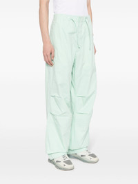 drawstring-waist straight-leg trousers Highlights - Light green - Cotton/virgin wool - Drawstring fastening - Straight leg - Two side slit pockets Imported Composition Cotton 100% Lining: Cupro 100% Outer: Virgin Wool 100% SIZE & FIT Model measurements Height 6 ft 2 in(1.87 m) Bust/Chest 33.07 in(84 cm) Hips 35.43 in(90 cm) Waist 26.77 in(68 cm) FittingInformation Designed with a wide leg, offering a loose and roomy fit The internal drawstring at the hem allows for fitted preferences at the ankle Made from a midweight non-stretch fabric This piece fits true to size – take your usual size Washing instructions Dry Clean Only