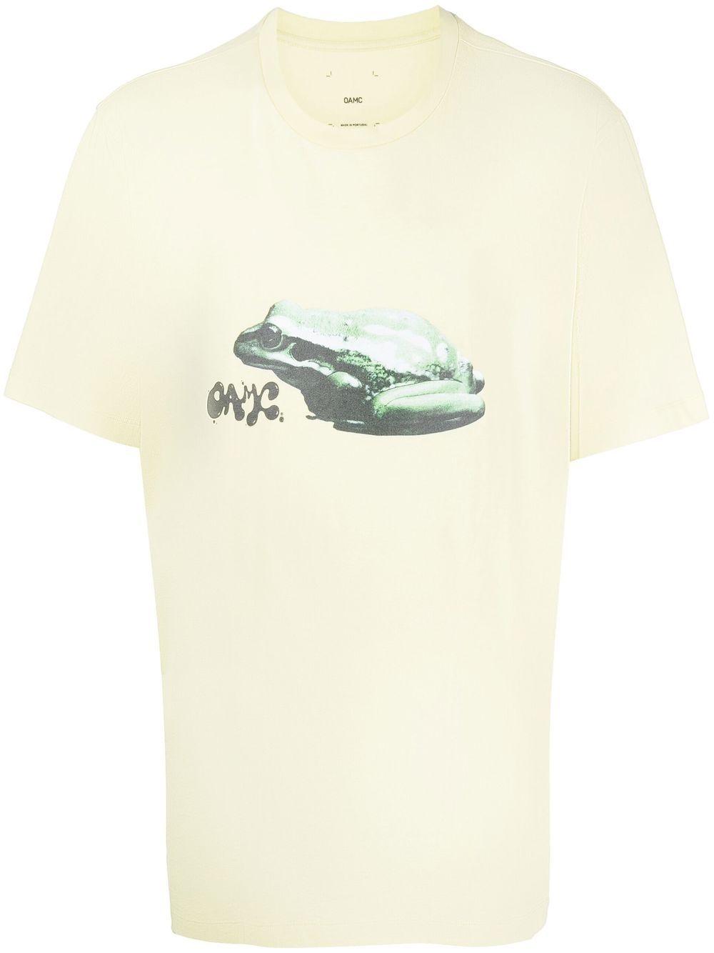 graphic-print crew-neck T-shirt light yellow cotton fine knit graphic print to the front crew neck short sleeves straight hem Imported Composition Body: Cotton 100% SIZE & FIT Model measurements Height 6 ft 2 in(1.87 m) Bust/Chest 36.22 in(92 cm) Hips 37.79 in(96 cm) Waist 28.34 in(72 cm) FittingInformation This piece fits true to size. We recommend you get your regular size Cut for an oversized fit Made with a mid-weight fabric Washing instructions Machine Wash