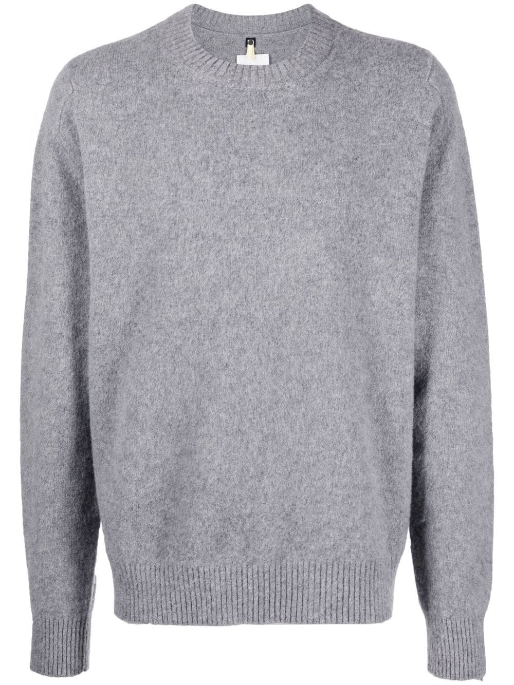 intarsia-knit logo wool=blend jumper grey intarsia-knit logo ribbed-knit edge crew neck long sleeves Made in Italy Composition Wool 94%, Polyamide 5%, Spandex/Elastane 1% SIZE & FIT Model measurements Height 6 ft 3 in(1.9 m) Bust/Chest 38.18 in(97 cm) Hips 37.79 in(96 cm) Waist 32.67 in(83 cm) FittingInformation This piece fits true to size. We recommend you get your regular size Cut for a loose fit Made with a mid-weight stretch fabric Washing instructions Dry Clean Only