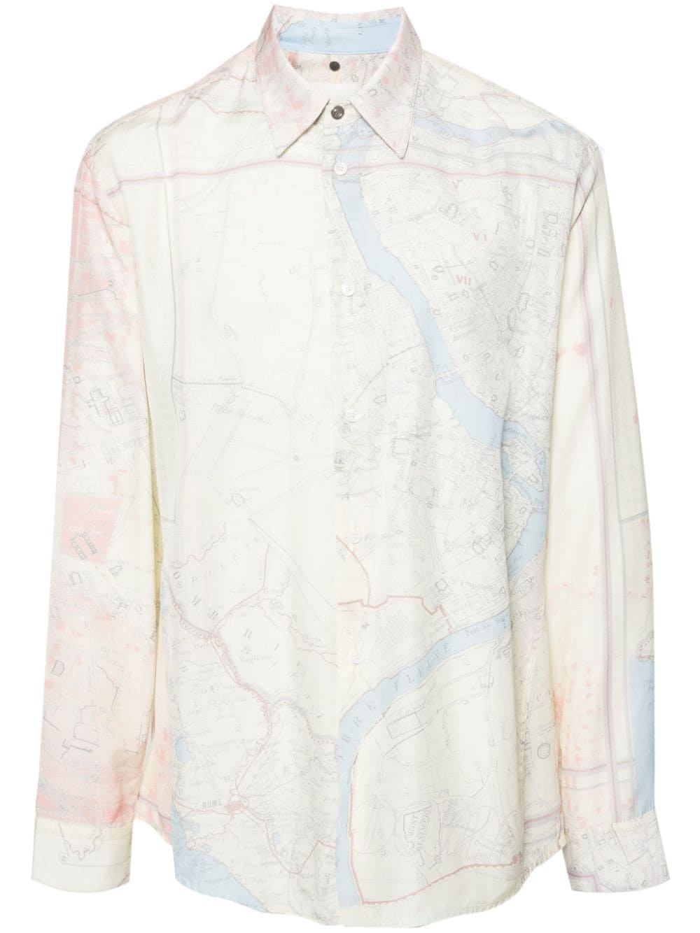 map-print shirt Highlights - Cream white/multicolour - Satin weave - All-over map print - Pointed flat collar - Long sleeves - Buttoned-cuff sleeves - Curved hem - Front button fastening Imported Composition Viscose 100% SIZE & FIT Model measurements Height 6 ft 2 in(1.87 m) Bust/Chest 36.41 in(92.5 cm) Hips 35.43 in(90 cm) Waist 29.52 in(75 cm) FittingInformation Designed to be unstructured, offering a loose fit throughout Made from a lightweight non-stretch fabric This piece fits true to size – take your usual size