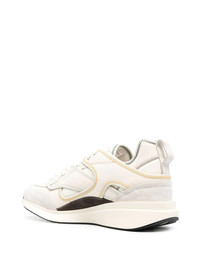 Aurora paneled Sneakers cream white calf leather chevron stitching panelled design suede panelling almond toe front lace-up fastening branded leather insole flat rubber sole Imported Composition Outer: Calf Leather 100% Lining: Calf Leather 100%, Fabric 100% Sole: Rubber 100% SIZE & FIT Measurement HEEL 1.57 in(4 cm) Sole height 0.78 in(2 cm)