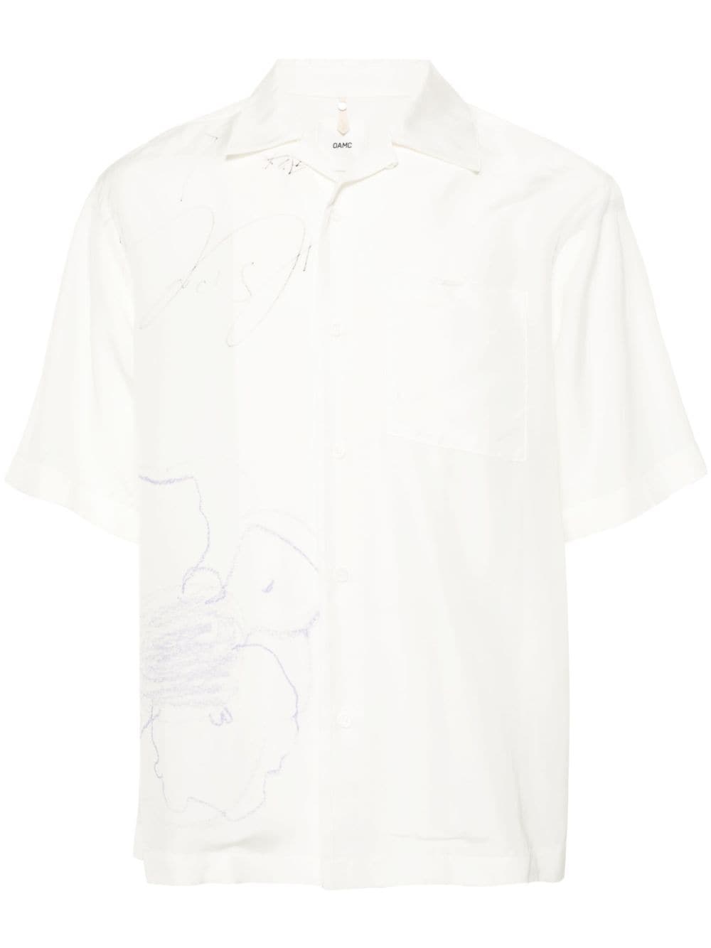 sketch-print short-sleeve shirt Highlights - White/black/lavender purple - Sketch-style print - Cuban collar - Front button fastening - Short sleeves - Chest patch pocket - Straight hem Imported Composition Viscose 100% SIZE & FIT Model measurements Height 6 ft 2 in(1.87 m) Bust/Chest 36.41 in(92.5 cm) Hips 35.43 in(90 cm) Waist 29.52 in(75 cm) FittingInformation Designed for a boxy fit, intended for a loose fit throughout Made from a lightweight non-stretch fabric This piece fits true to size – take your usual size Washing instructions Dry Clean Only
