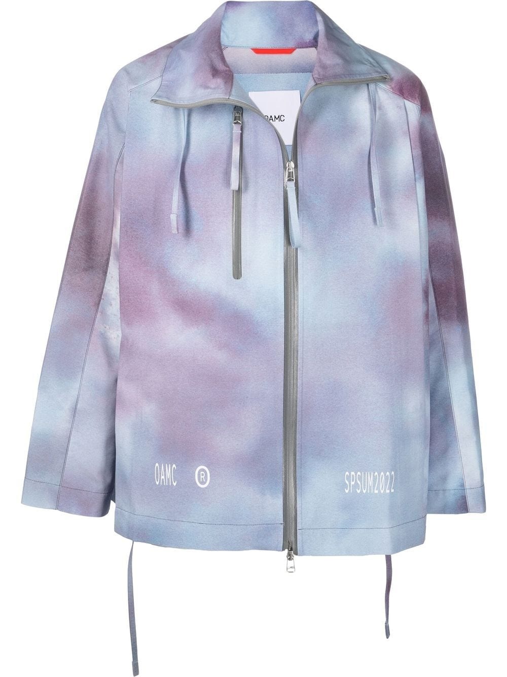 tie-dye zip-up lightweight jacket cherry blue cotton tie-dye print high neck front zip fastening long sleeves straight hem Made in Italy Composition Cotton 100%, Viscose 100% SIZE & FIT Model measurements Height 6 ft 2 in(1.87 m) Bust/Chest 36.41 in(92.5 cm) Hips 37 in(94 cm) Waist 29.52 in(75 cm) FittingInformation This piece fits large – you might want to get one size down Cut for a loose fit Made with a mid-weight non-stretch fabric Washing instructions Dry Clean Only