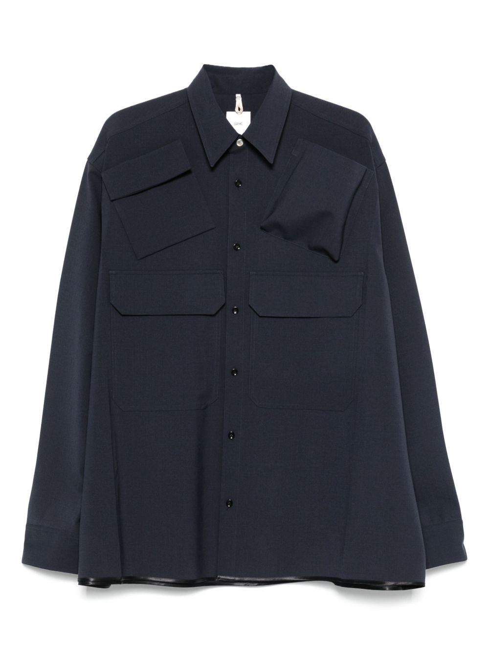 Troy shirt Highlights - Midnight blue - Front button fastening - Two chest patch pockets - Two front flap pockets - Buttoned cuffs Made in Italy Composition Polyester 54%, Wool 44%, Elastane 2% SIZE & FIT Model measurements Height 6 ft 1 in(1.86 m) Bust/Chest 37.4 in(95 cm) Hips 36.22 in(92 cm) Waist 29.52 in(75 cm) FittingInformation Designed to be unstructured, offering a loose fit throughout Made from a midweight stretch fabric, this piece offers elasticity and flexibility when worn