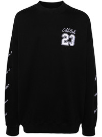 23 Logo Skate cotton sweatshirt Taking cues from skate culture, this black sweatshirt by Off-White is made from cotton to a relaxed crew-neck silhouette adorned with embroidered detailing referencing the brand, amongst which its logo, Milan headquarters and founding year, as well as late founder Virgil Abloh's surname. Highlights - Black/white - Cotton - Knitted construction - Embroidered logo at the chest, sleeves and rear - Crew neck - Drop shoulder - Long sleeves - Ribbed cuffs and hem - Straight hem - Towelling lining - Authenticity qr code Imported Composition Cotton 100%, Polyester 100% SIZE & FIT Model measurements Height 6 ft 2 in(1.87 m) Bust/Chest 36.41 in(92.5 cm) Hips 37 in(94 cm) Waist 29.52 in(75 cm) Measurement CHEST 50.39 in(128 cm) SLEEVE LENGTH 24.01 in(61 cm) LENGTH 24.01 in(61 cm) FittingInformation Designed for an oversized fit, offering additional room throughout The ribbed hem offers a close, comfortable fit Made from a midweight non-stretch fabric, this piece offers minimal elasticity when worn This piece fits true to size – take your usual size Washing instructions Machine Wash