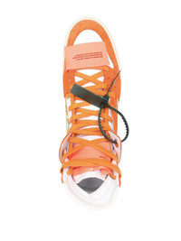 3.0 Off Court high-top sneakers Featuring signature elements of the Off-White brand, such as a Zip Tie tag and Arrows motif, these Off-Court 3.0 sneakers are instantly recognisable. The placement of these across the shoe and over a white and orange colourway, fits into the brand's concept of 'embracing the now in a sophisticated manner'. Highlights - White/orange - Calf leather - Signature zip tie tag - Front lace-up fastening - Round toe - Ridged rubber sole - Due to the dyeing process used, this product must not come into contact with water. Made in Italy Composition Outer: Calf Leather 100% Lining: Fabric 100% Sole: Rubber 100%