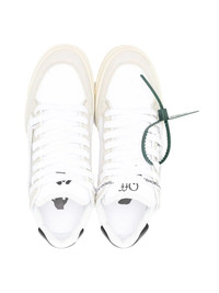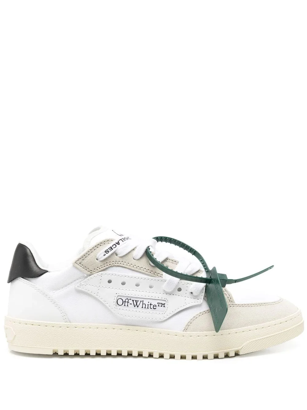5.0 low-top sneakers Showcasing Off-White's affinity for effortless style, the 5.0 sneaker boasts a low-top silhouette with a panelled design. A brand staple, the Zip-Tie tag adds an instantly recognisable touch. Highlights - White - Leather - Panelled design - Logo patch to the side - Signature zip tie tag - Round toe - Front lace-up fastening - Flat rubber sole - Due to the dyeing process used, this product must not come into contact with water. Made in Italy Composition Outer: Leather 70%, Cotton 24%, Polyamide 6% Lining: Leather 51%, Cotton 39%, Polyamide 10% Sole: Rubber 100% SIZE & FIT FittingInformation This piece fits large – take one size down