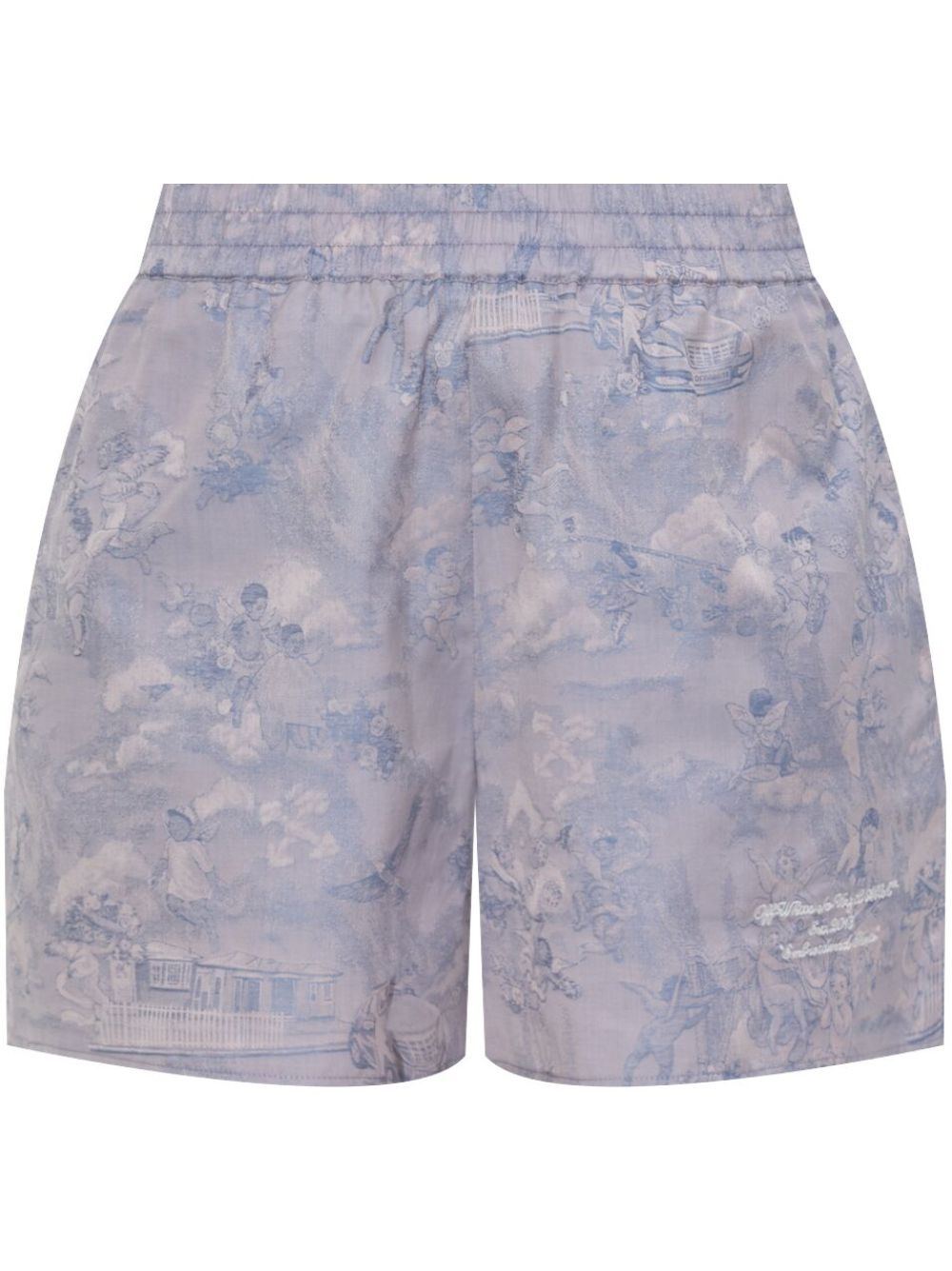 all-over printed shorts Highlights - Light purple - Elasticated waistband - Two side slit pockets - Logo lettering - All-over graphic print Made in Italy Composition Cotton 100%