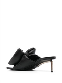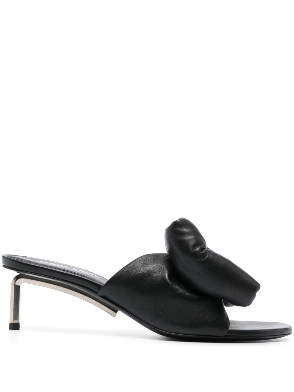 60mm Allen bow-detail leather sandals Made in Italy from smooth calf leather in a sleek black hue, the Allen mules from Off-White boast a padded design for added dimension and an oversized bow at the front, while the hexagonal heel offers a playful finishing touch. Highlights - Black - Calf leather - Padded design - Bow detailing - Square open toe - Branded leather insole - Stiletto heel Made in Italy Composition Outer: Calf Leather 100% Sole: Calf Leather 100% Lining: Calf Leather 100% SIZE & FIT Measurement HEEL 2.36 in(6 cm)