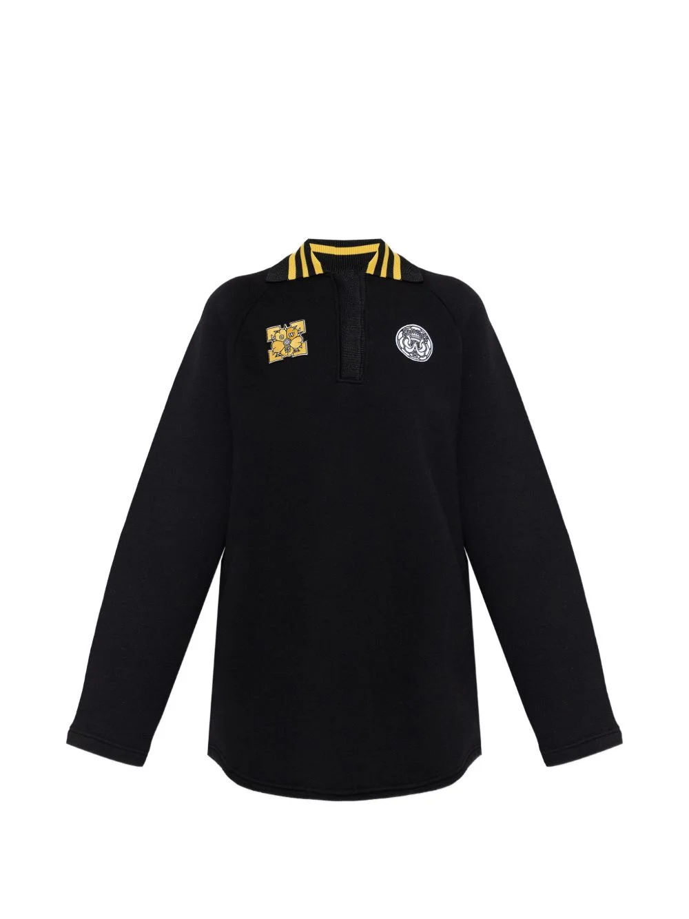appliqued collared dress Highlights - Black - Appliques - Collared - Long sleeves - Half placket - Ribbed trim Imported Composition Outer: Cotton 100%
