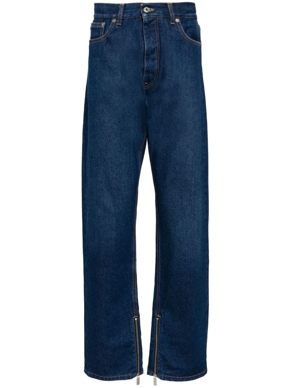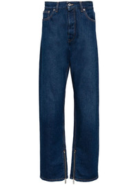Arr Tab Zip Det Skate wide-leg jeans Versatility is worked into the design of these mid-rise jeans from Off-White, through the addition of a zip along the in-seam which alters the shape of the pair's wide-leg silhouette. Highlights - Indigo blue - Cotton - Denim - Logo patch to the rear - Signature arrows motif - Contrast stitching - Metal eyelet detailing - Mid-rise - Belt loops - Wide leg - Concealed fly and button fastening - Classic five pockets - Ankle zips Made in Italy Composition Cotton 100% SIZE & FIT Model measurements Height 6 ft 2 in(1.87 m) Bust/Chest 33.07 in(84 cm) Hips 35.43 in(90 cm) Waist 26.77 in(68 cm) FittingInformation Designed with a bootcut leg, these jeans allow for an unrestricted, comfortable fit with additional room at the calves Sturdy and hard-wearing, this denim piece offers no stretch This piece fits true to size – take your usual size