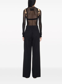 Arrow fishnet top Showcasing a formfitting, fishnet design, this Off-White top is embellished with logo applique of the label's signature Arrows motif on its rear. The contemporary look is complete with circular cut-outs. Highlights - Black - Fisherman's knit - Cut-out detailing - Crew neck - Long sleeves - Straight hem Made in Italy Composition Viscose 67%, Polyester 28%, Polyamide 4%, Polyurethane 1% Washing instructions Read Manufacturer Guidelines