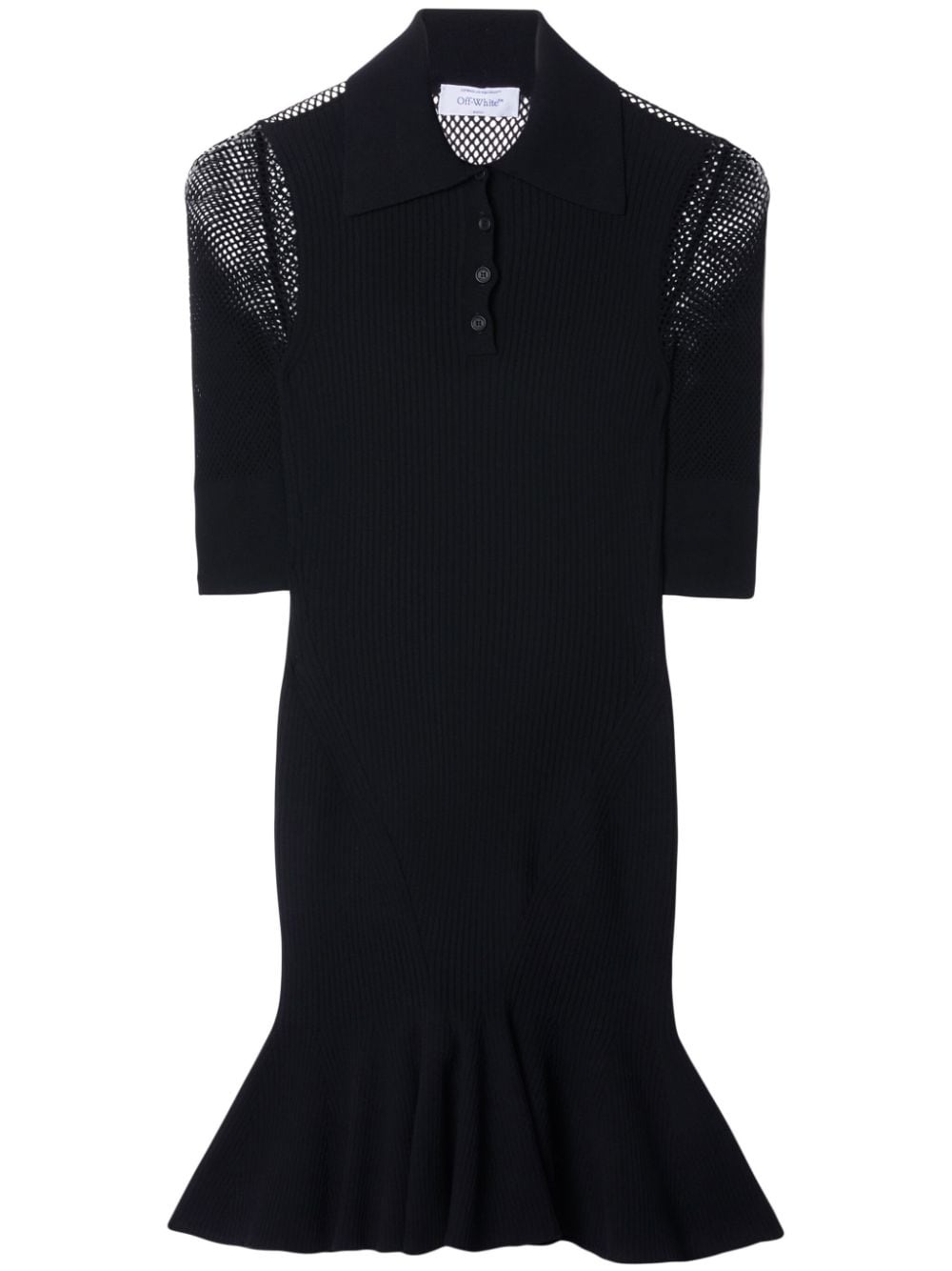 Arrow half-sleeve fishnet minidress Highlights - Black - Fishnet - Fine ribbed - Polo collar - Front button placket - Half-length sleeves - Flared hem - Thigh-length Made in Italy Composition Viscose 64%, Polyester 28%, Polyamide 7%, Polyurethane 1%