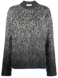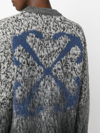 Arrow intarsia jumper OFF-White gives a refresh to the classic jumper by adding its signature Arrows motif on the rear. It's crafted from a mohair-wool blend and features a crew neck. Highlights - Grey/white/blue - Mohair blend - Signature arrows motif - Crew neck - Long sleeves - Straight hem Made in Italy Composition Mohair 50%, Polyamide 32%, Wool 18%