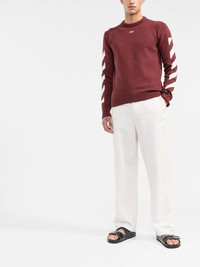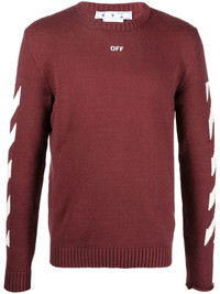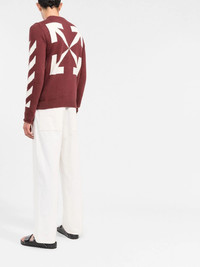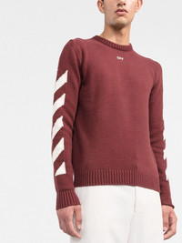 arrow-knit crew neck jumper arrow-knit crew neck jumper from OFF-WHITE featuring red, white, cotton blend, intarsia knit, knitted construction, crew neck and long sleeves. Made in Italy Composition Cotton 75%, Polyester 25% SIZE & FIT Model measurements Height 6 ft 2 in(1.89 m) Bust/Chest 37 in(94 cm) Hips 37 in(94 cm) Waist 28.93 in(73.5 cm) Measurement CHEST 37.79 in(96 cm) SLEEVE LENGTH 25.59 in(65 cm) Shoulder Width 16.14 in(41 cm) LENGTH 24.8 in(63 cm) FittingInformation This piece fits true to size. We recommend you get your regular size Cut for a relaxed fit Made with a mid-weight fabric Washing instructions Dry Clean Only