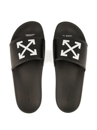 arrow-print slip-on sliders Highlights - Black - Arrow motif - Rubber sole - Flat sole - Slip-on style Made in Italy Composition Sole: Polyurethane 100% Lining: Polyethylene vinyl acetate (PEVA) 100% Outer: Polyester 100%