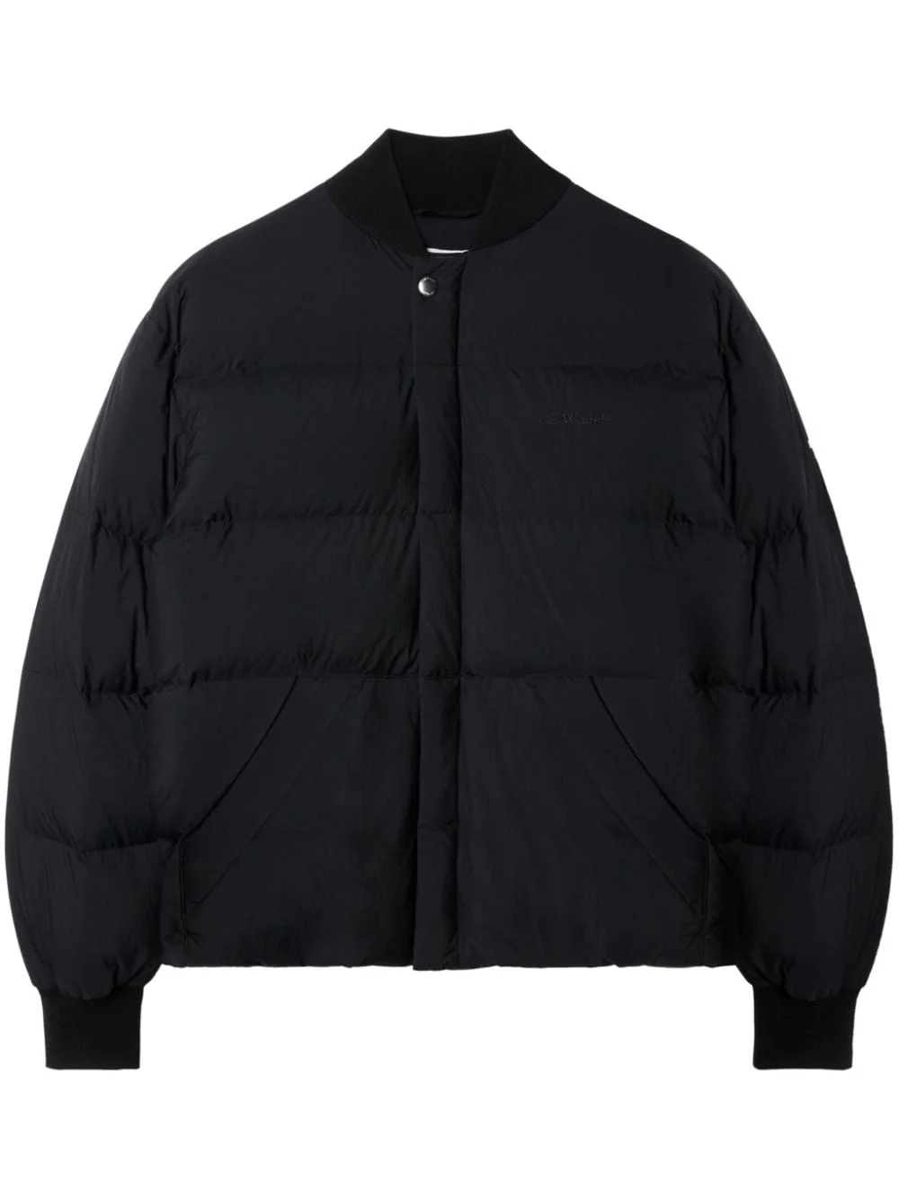 Arrow puffer jacket Renowned for its streetwear-inspired aesthetic, Off-White presents this padded jacket design for SS24. Rendered in black, it's emblazoned with the iconic Arrow motif across the back. Highlights - Black - Padded design - Signature arrows motif - Concealed front fastening - Long sleeves - Straight hem Made in Italy Composition Outer: Polyamide 100% Lining: Polyester 100%, Polyamide 100%, Feather Down 100% Washing instructions Read Manufacturer Guidelines