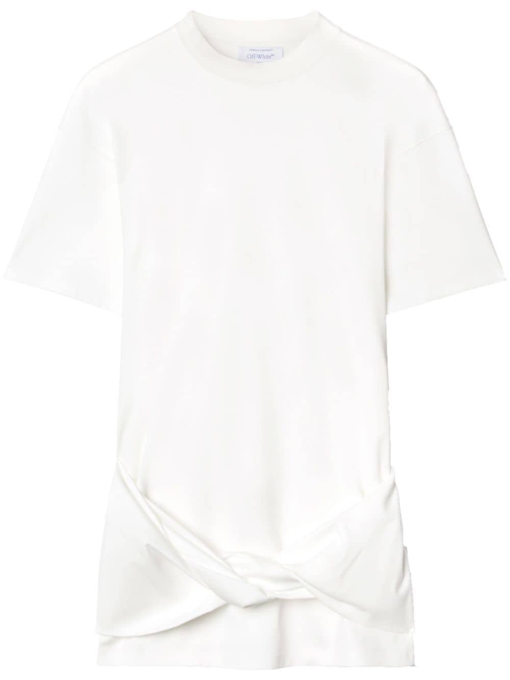 Arrow Twisted T-Shirt dress An updated take on the classic T-shirt dress, this white number from Off-White is cut from cotton in Italy for a short-sleeve crew neck silhouette. A seasonal twist-detail at the front lends dimension to its monochrome design. Highlights - White - Cotton - Crew neck - Short sleeves - Twist detailing - Thigh-length - Straight hem Made in Italy Composition Cotton 100% Washing instructions Read Manufacturer Guidelines