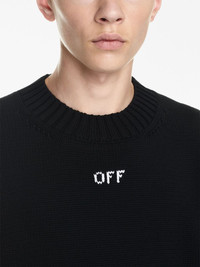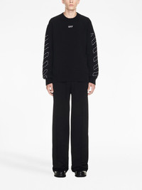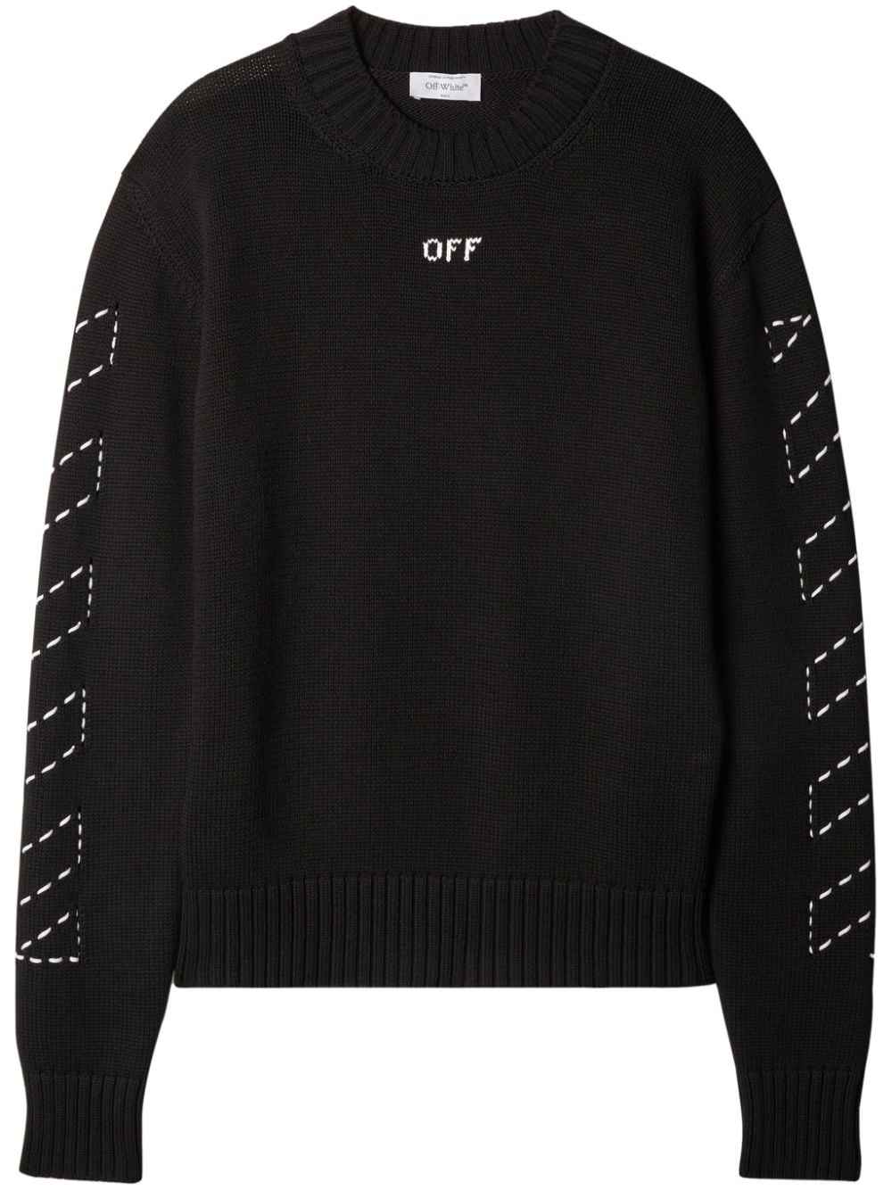 Arrows-embroidery crew-neck jumper Off-White offers an instantly recognisable style with this jumper. Crafted from a blend of cotton in black, it is decorated with multiple branded details. An intarsia-knit OFF logo decorates the front, while stitched versions of the brand's Diag Stripe and Arrows motif adorn the sleeves and back, respectively. Highlights - Black - Cotton blend - Intarsia-knit logo - Signature diag-stripe embroidery - Signature arrows motif - Crew neck - Long sleeves - Ribbed cuffs and hem Made in Italy Composition Cotton 74%, Polyamide 26% Washing instructions Read Manufacturer Guidelines