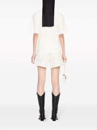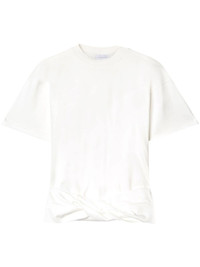 Arrows-motif twisted cotton shirt Off-White spotlights its convention-defying approach with this white T-shirt. Made from cotton, it boasts a minimalist crew-neck silhouette enhanced by twisting at the bottom, lending texture and asymmetry. Highlights - White - Cotton - Twist detailing - Signature arrows motif - Crew neck - Drop shoulder - Short sleeves - Asymmetric hem Made in Italy Composition Cotton 100%