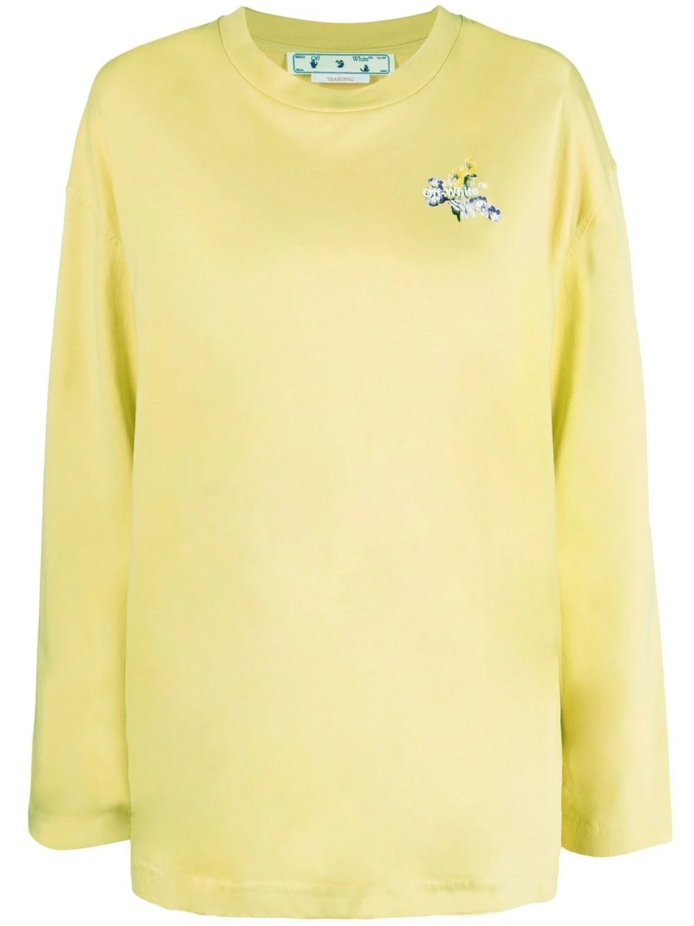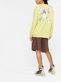 Arrows-print organic-cotton T-shirt Off-White's Arrows logo is instantly recognisable, with the motif used by the brand to express its penchant for industrial-inspired style. Here, a floral-detailed iteration of the signature logo details the back of this organic cotton T-shirt. Highlights - Light green - Organic cotton - Signature arrows motif - Floral motif - Logo print at the chest - Crew neck - Drop shoulder - Long sleeves Imported Composition Organic Cotton 100% SIZE & FIT Model measurements Height 5 ft 10 in(1.78 m) Bust/Chest 30.31 in(77 cm) Hips 36.61 in(93 cm) Waist 24.8 in(63 cm) FittingInformation This piece fits true to size. We recommend you get your regular size Cut for a relaxed fit Made with a mid-weight fabric Washing instructions Machine Wash