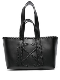 Arrows-stitch leather tote bag Off-White’s minimalist design aesthetic is accentuated with signature details such as the Arrows motif, as seen here on this tote bag. Crafted from black leather, it is suspended from two short and two long top handles. Highlights - Black - Leather - Perforated - Signature arrows motif - Two short top handles - Two long top handles - Main compartment - Silver-tone hardware - Removable pouch Made in Italy Composition Lining: Polyamide 60%, Polyurethane 40% Outer: Leather 100% SIZE & FIT Model measurements Height 5 ft 10 in(1.77 m) Bust/Chest 33.07 in(84 cm) Hips 37 in(94 cm) Waist 24.8 in(63 cm) Measurement DEPTH 5.9 in(15 cm) HANDLE 3.93 in(10 cm) HEIGHT 9.05 in(23 cm) STRAP 22.44 in(57 cm) WIDTH 11.81 in(30 cm)
