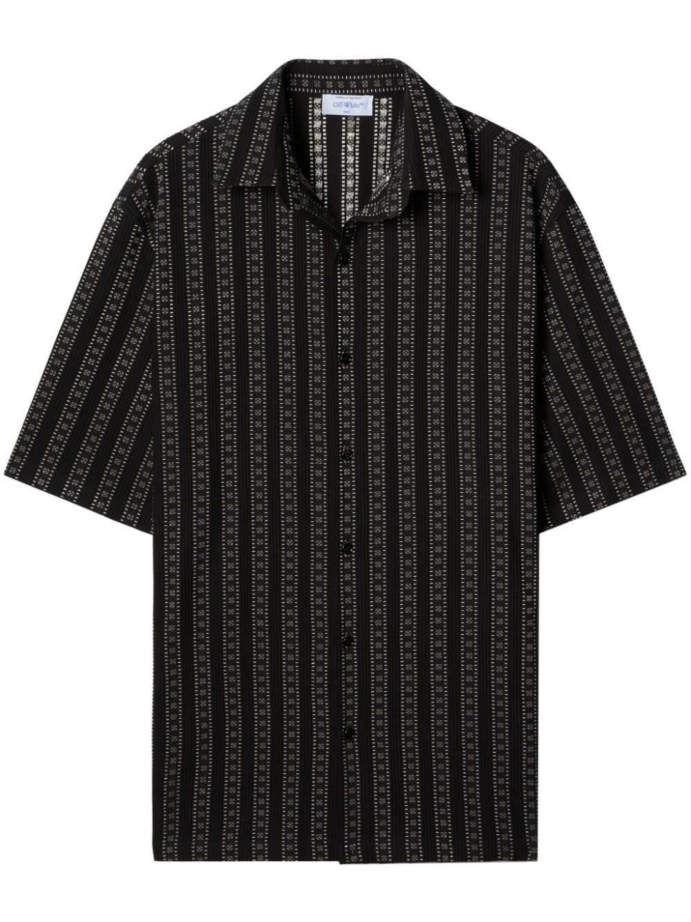 Arrows striped shirt Highlights - Black - Cotton blend - Signature arrows motif - Vertical stripe pattern - Cuban collar - Front button fastening - Short sleeves - Straight hem Made in Italy Composition Cotton 79%, Acetate 21% Washing instructions Read Manufacturer Guidelines
