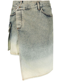 asymmetric denim skirt In keeping with its street-style aesthetic, Off-White gives the classic denim skirt a striking twist - note the off-centre button fastening that’s accentuated by the exaggerated asymmetric hem. Made in Italy Composition Lining: Cotton 100% Outer: Cotton 100% SIZE & FIT Model measurements Height 5 ft 10 in(1.78 m) Bust/Chest 31.49 in(80 cm) Hips 35.03 in(89 cm) Waist 23.62 in(60 cm) FittingInformation This piece fits true to size. We recommend you get your regular size Designed to be fitted at the waist and hips, loose over the leg Made with a mid-weight non-stretch fabric Washing instructions Machine Wash