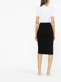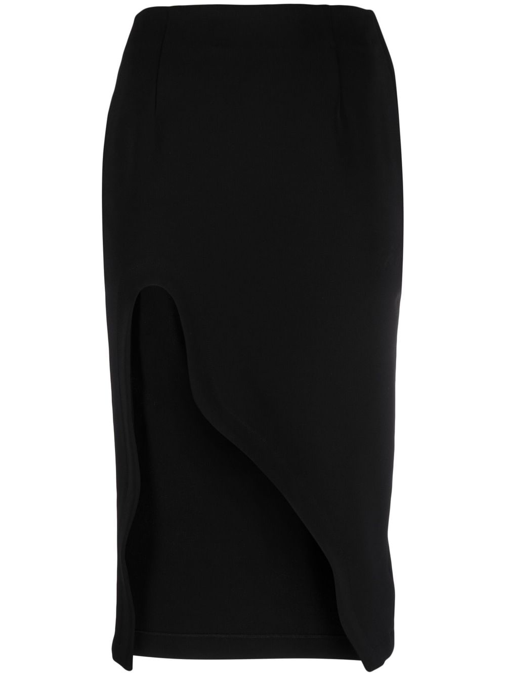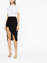 asymmetric midi skirt Off-White's affinity for tailored garments with minimal detailing is captured in the sleek lines of this black mini skirt. It's elevated by a sculptural side split, nodding to the label's directional aesthetic. Highlights - Black - Crepe texture - Stretch-design - Tonal stitching - High waist - Side slit - Asymmetric hem Made in Italy Composition Viscose 86%, Polyamide 10%, Elastane 4% SIZE & FIT Model measurements Height 5 ft 10 in(1.77 m) Bust/Chest 32.67 in(83 cm) Hips 35.43 in(90 cm) Waist 23.62 in(60 cm) FittingInformation This piece fits true to size. We recommend you get your regular size Designed to be fitted at the waist and hips, loose over the leg Made with a mid-weight stretch fabric