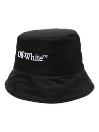 Bookish logo-embroidered hat Off-White's minimalist approach to streetwear is reflected in the design of this black bucket hat. Its only detailing comes in the form of the label's signature Bookish logo, which is embroidered in contrasting white threads across the front. Highlights - Black/white - Gabardine weave - Embroidered logo to the front - Flexible brim - Flat crown - Full lining Made in Italy Composition Polyester 100% SIZE & FIT Measurement BRIM 2.36 in(6 cm) CIRCUMFERENCE 22.83 in(58 cm) Washing instructions Dry Clean Only