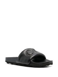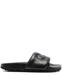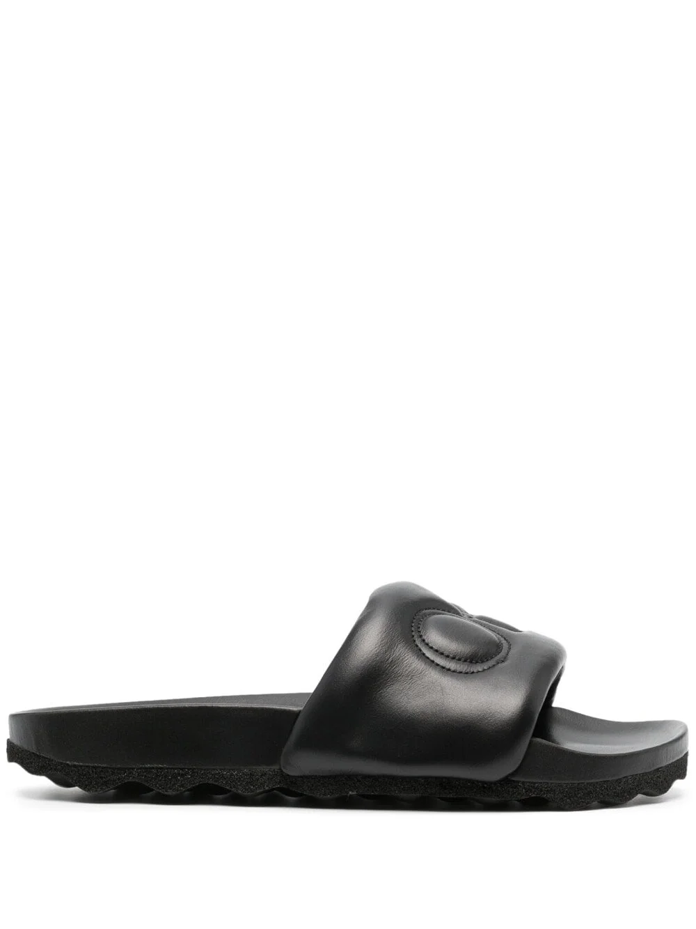 Bookish Sponge logo-embroidered slides Off-White's Bookish Sponge slides get their name from their soft curved sole that resembles sponges. A padded strap adds to that comfortable feel. Highlights - Black - Leather - Embroidered logo to the front - Open toe - Branded insole - Ridged rubber sole Made in Italy Composition Outer: Leather 100% Sole: Rubber 100% Lining: Polyester 100%