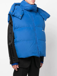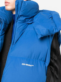 Bounce down-feather hooded jacket Off-White moves away from their signature black and white colourway with this gilet, instead imagining it in a bright-blue hue. This creates a cheerful finish for the down-feather piece. Made in Italy Composition Lining: Feather Down 100%, Polyester 100% Outer: Polyester 100% SIZE & FIT Model measurements Height 6 ft 2 in(1.87 m) Bust/Chest 35.82 in(91 cm) Hips 35.43 in(90 cm) Waist 27.95 in(71 cm) FittingInformation This piece fits true to size. We recommend you get your regular size Cut for a loose fit Made with a mid-weight non-stretch fabric Washing instructions Machine Wash
