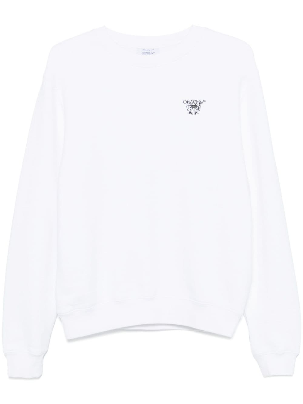 Bow Arrow sweater Highlights - White - Cotton - Fleece texture - Bow arrow print to the chest and rear - Ribbed trim - Crew neck - Drop shoulder - Long sleeves - Straight hem Imported Composition Lining: Cotton 95%, Elastane 5% Outer: Cotton 100% SIZE & FIT Model measurements Height 5 ft 11 in(1.8 m) Bust/Chest 32.28 in(82 cm) Hips 35.03 in(89 cm) Waist 24.8 in(63 cm) FittingInformation Designed to be unstructured, offering a loose fit throughout Made from a midweight non-stretch fabric, this piece offers minimal elasticity when worn